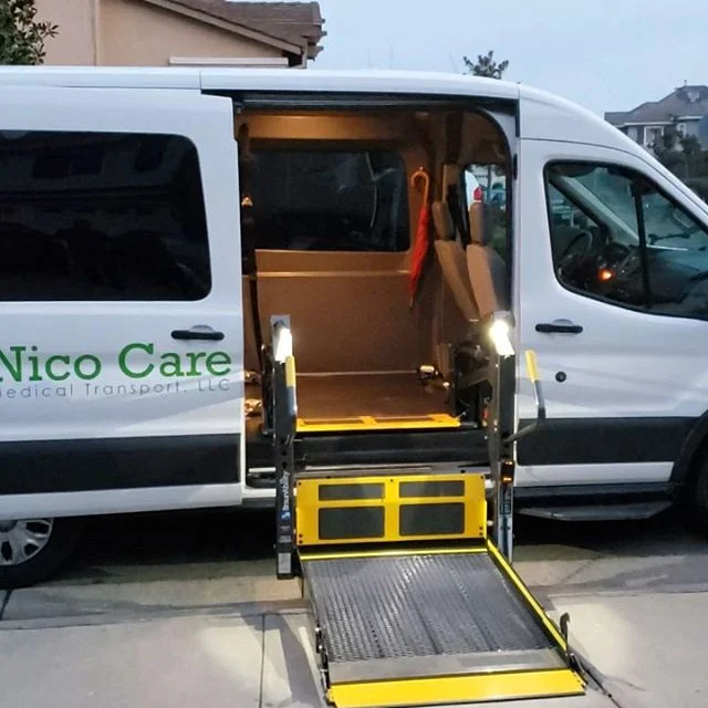 Our company is bay area local, family owned and we treat our clients like our own family with their safety and comfort in mind. Nico Care Medical Transport drivers have clean MVR records and are trained in Defensive Driving Techniques. Both our handlers and drivers are annually trained in CPR, First Aid and AED via American Red Cross. Our vehicles are thoroughly cleaned and sanitized, provides plenty of room for comfort than a regular van, stocked with a full oxygen tank, equipped with commercial grade gurneys and wheelchairs, customized with an ADA complaint wheelchair lift and our vans are GREEN, installed with an XL Hybrid Electric system that saves gas and the environment!